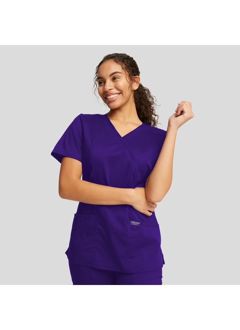 A Modern Classic fit mock wrap top features front shoulder yokes, two patch pockets, instrument loop, logo label with bungee loop, front and back princess seams and side vents. Center back length: 26"